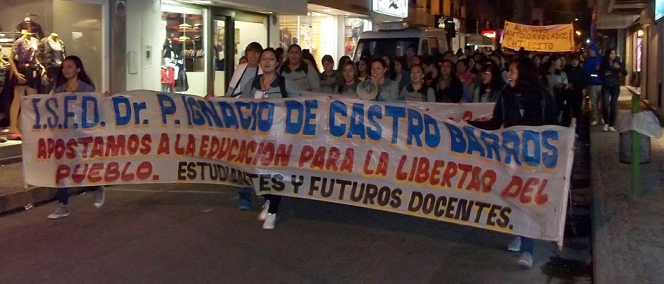 Encabezando la comunidad educativa del Profesorado Castro Barros y su reclamo de devolución del histórico edificio de la Escuela Normal para uso educativo, se desarrolló esta noche del viernes una nueva movilización por las calles céntricas de la ciudad.