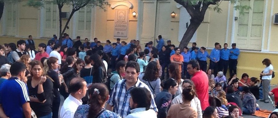 Se conoció que el Ministerio de Educación de la Provincia, a través de su área Legal y Técnica, fue el que presentó una denuncia ante el Ministerio Público Fiscal, por el delito de obstrucción del ingreso al edificio del Profesorado Castro Barros, ubicado sobre calle Copiapó. El juez Barría, basándose en esta presentación, ordenó la actuación de la Policía que terminó en el desalojo de los estudiantes.