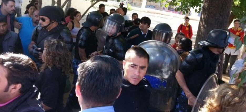 Tal disposición, se aclara en la cédula de notificación, se dicta “en forma cautelar y mientras se sustancia el legajo de flagrancia”. Se trata de la causa en la que está imputada por su participación en los hechos que se produjeron días atrás cuando la comunidad educativa, con apoyo de padres y dirigentes sociales, resistieron la suspensión de la directora de esa escuela, Norma Illanes de Ticac, dispuesta por el Ministerio de Educación, que debió dejar sin efecto la decisión (foto).