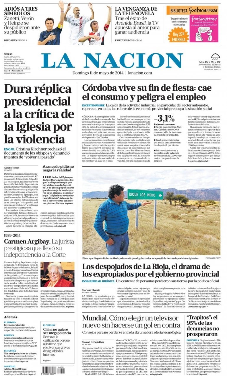 El diario La Nación título esté domingo «Los despojados de La Rioja, el drama de los expropiados por el gobierno provincial».