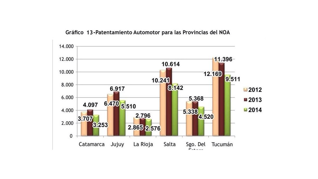 El patentamiento de automóviles también bajó en la región durante el primer semestre del año. En el caso de Salta, entre enero y junio de 2013 se registraron 10.614 vehículos, mientras que este año solo se entregaron 8.142 patentes nuevas. Esto tuvo su contrapartida en Jujuy, que pasó de 6.917 a 5.510 unidades patentadas, y en Tucumán que bajó de 11.396 automóviles registrados hace un año a 9.511 unidades ahora.