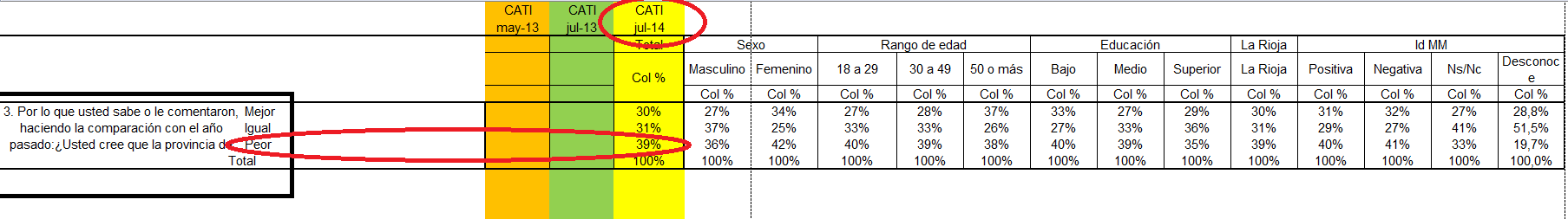 Un 36 por ciento de los encuestados consideró que dentro de un año estará peor la provincia, mientras que un 39 por ciento entendió que está peor en comparación al año pasado. Así surge de una encuesta realizada por una empresa nacional, a la que accedió RiojaPolítica.