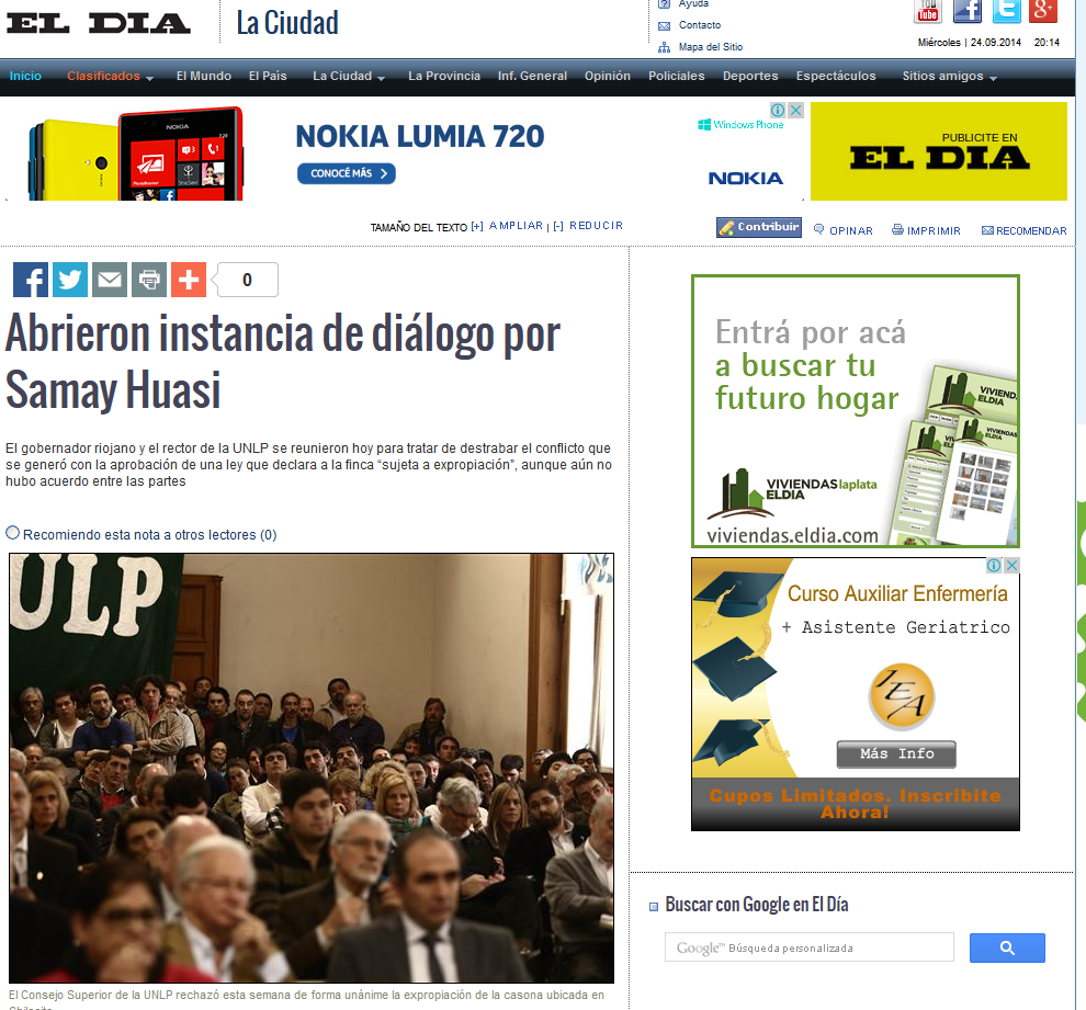 El gobernador de La Rioja, Luis Beder Herrera, y el rector de la Universidad Nacional de La Plata, Raúl Perdomo, se reunieron en la tarde del miércoles en la casa que esa provincia tiene en la capital federal y definieron abrir una instancia de diálogo para intentar destrabar el conflicto que se generó con la aprobación de una ley -por parte de la legislatura riojana- que declara a la finca y Casa de Descanso Samay Huasi “sujeta a expropiación”.