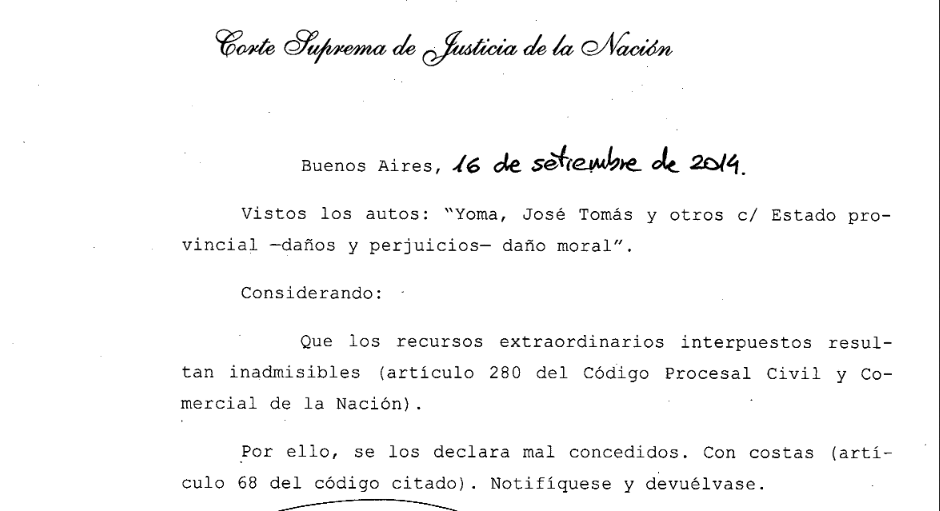La Corte Suprema de Justicia consideró «mal concecido» en la causa Yoma, José Tomás y otros /s casación. Se trata de la demanda contra la destitución del ex juez del Tribunal Superior de Justicia.