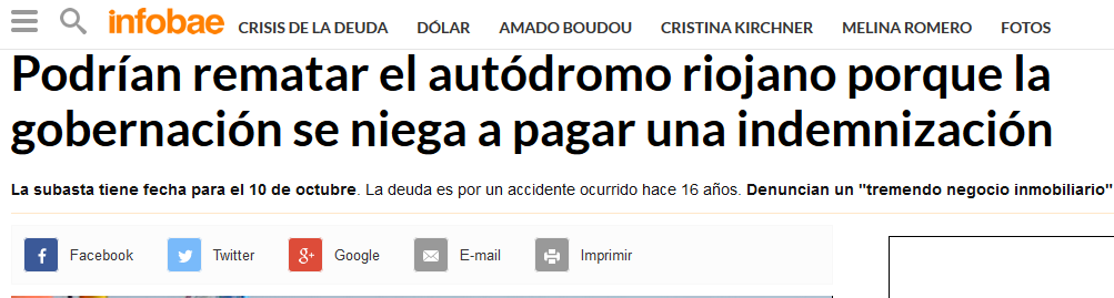Sea cual fuera la cifra precisa, el monto está muy lejos de los entre 100 y 300 millones de pesos que cuestan las 84 hectáreas sobre las que está asentado el autódromo, a unas 15 cuadras del centro de la capital provincial. Por eso el abogado de Auto Club, Luis Carreño, denunció que detrás de la desidia de los Estados provincial y municipal habría un «tremendo negocio inmobiliario, ideal para que algún amigo del poder comparezca y adquiera el autódromo con fines de ser destinado a la construcción del country más grande de La Rioja».