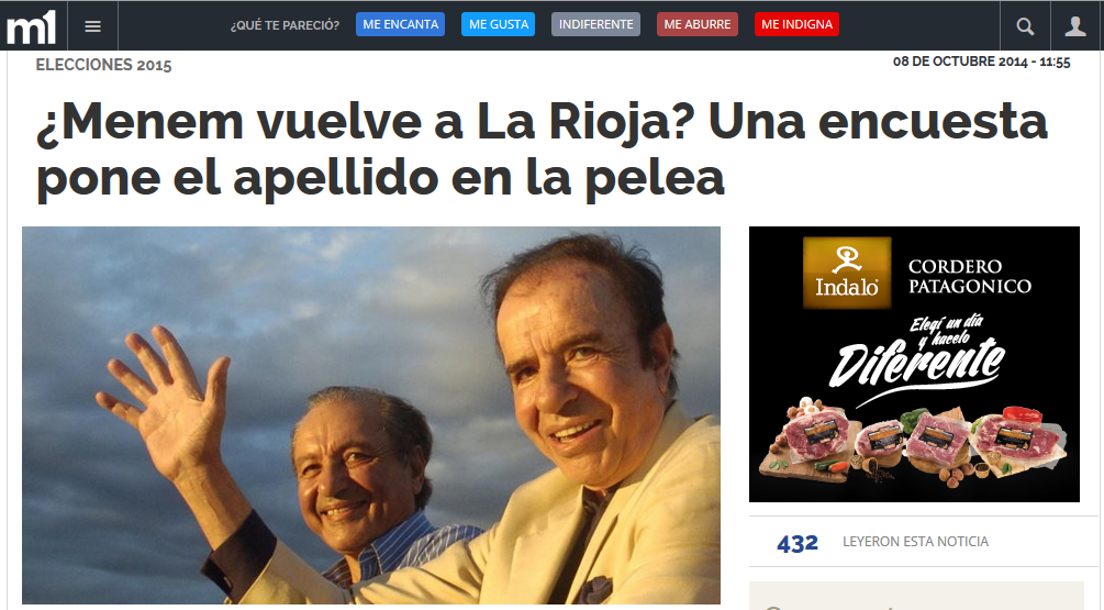 Contrario a lo que se sospecha, el menemismo goza de buena salud en sus tierras. Han pasado ya 12 años del histórico abandono de Carlos Menem ante una segunda vuelta en la que debía disputar su suerte con el entonces desconocido Néstor Kirchner -que había quedado en segundo lugar, unos puntos debajo del riojano- pero la imagen del senador crece: el 70% de los riojanos ve con buenos ojos su figura.