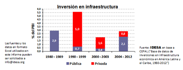 Entre los 2004 y el 2012 la inversión en infraestructura volvió a ser de 2,9% del PBI.