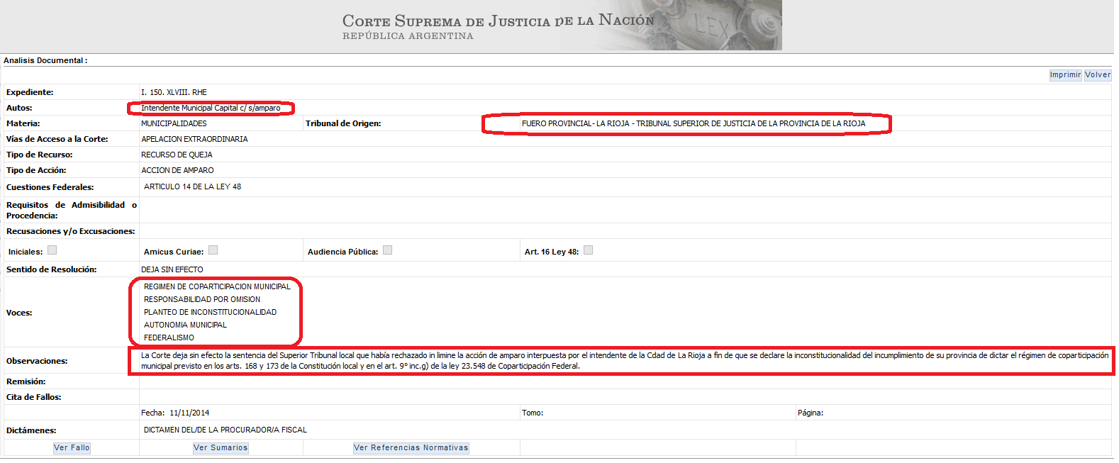 Fue tras que -con la firma de los Doctores Lorenzetti, Highton, Fayt y Maqueda- hizo lugar en el día de la fecha al recurso del Intendente de la Ciudad de La Rioja para que el Superior Tribunal de Justicia provincial se pronuncie sobre la omisión de esa provincia en dictar una ley de coparticipación municipal.