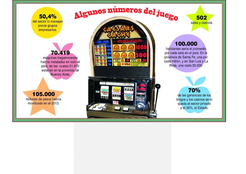 El epicentro del juego era –es– la provincia de Buenos Aires y los lugares que más recaudan no son los ubicados en los centros turísticos, sino «los de Berazategui, Avellaneda, Lomas del Mirador y San Martín». En el 2013 había 46 bingos en 32 localidades.
