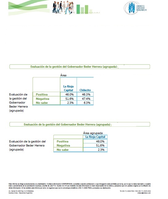«Para Aresco la consultora de Julio Aurelio el gobernador Beder Herrera tiene en los riojanos principalmente Rioja Capital y Chilecito un rechazo a su gestion mayor al grado de aceptacion». Evidencia el desgaste de su gestión.