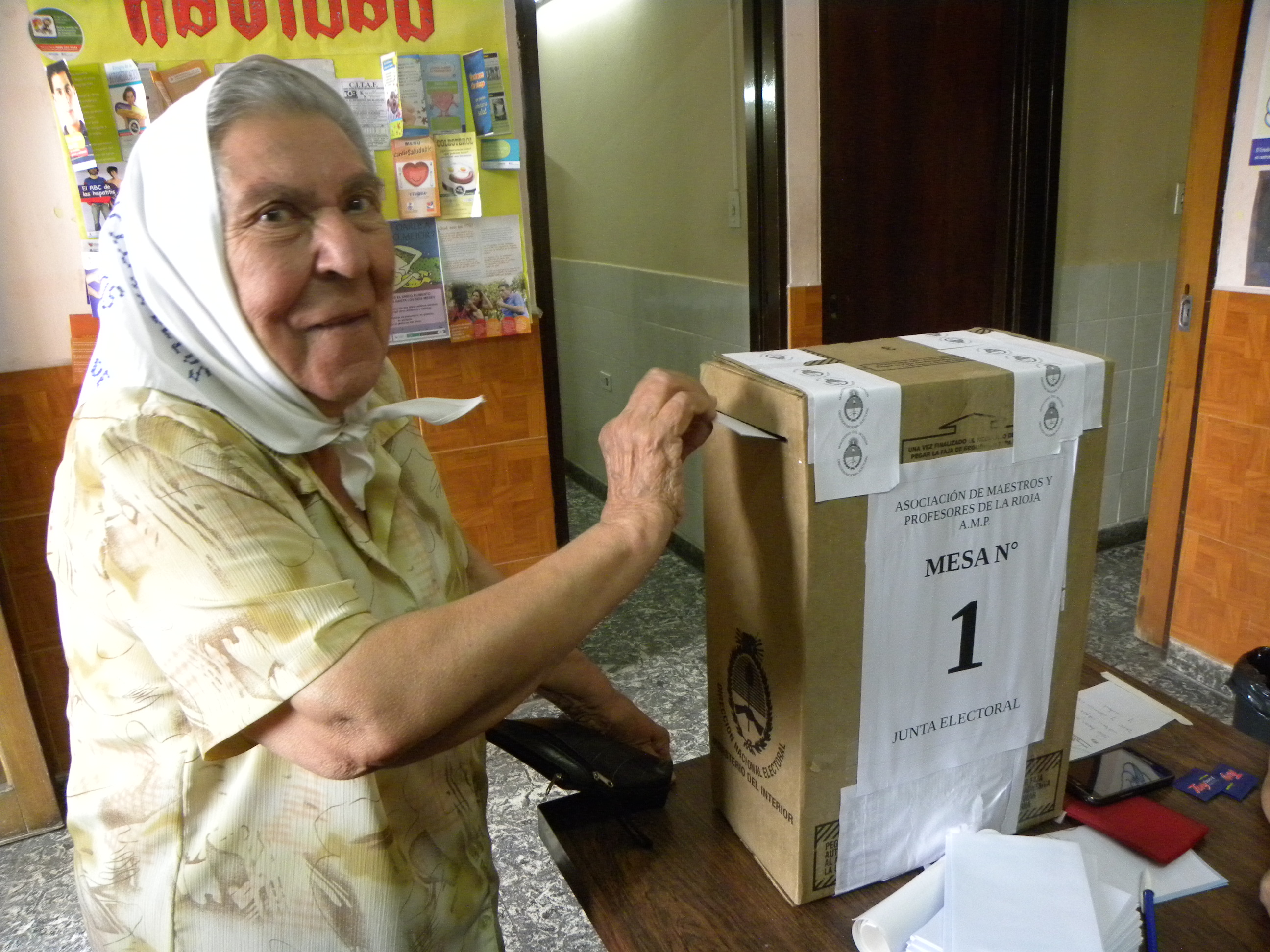 Con casi 90 años, la docente jubilada y afiliada a la AMP, emitió su voto con la firme convicción de continuar batallando por un país democrático en todos sus aspectos. Doña Luisa, es madre de Oscar Alfredo Torres Toledo, quien está desaparecido desde el 3 de noviembre de 1975. Su constante lucha y sus pedidos de respuestas se han hecho eco en organismos de Derechos Humanos provinciales, nacionales e internacionales; convirtiendo a la madre, en un ejemplo para todos los riojanos.