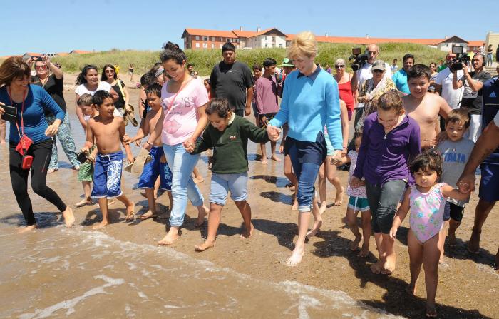 La Presidenta de la Fundación Banco Provincia y esposa del gobernador Daniel Scioli recibió en la localidad de Chapadmalal a alumnos de la Escuela Rural Nro 308 del Pasaje San Lorenzo, de la provincia de La Rioja, los cuales pudieron conocer el mar a través de la invitación de la primera dama provincial.