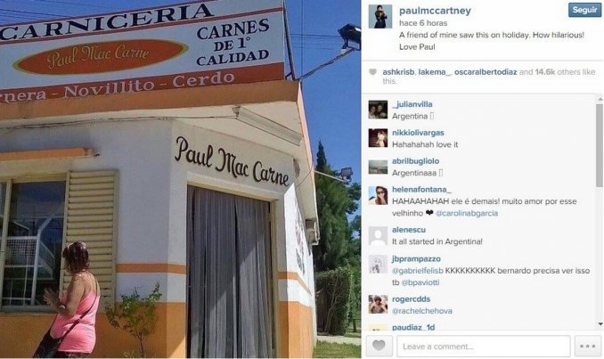 La foto con el frente del local se convirtió en una «hit» en las redes y la foto de la carnicería fue tan compartida que llegó al propio Paul, que en Instagram acompañó la imagen con el mensaje: «Esto lo vio un amigo en sus vacaciones. ¡Qué gracioso! Love, Paul».