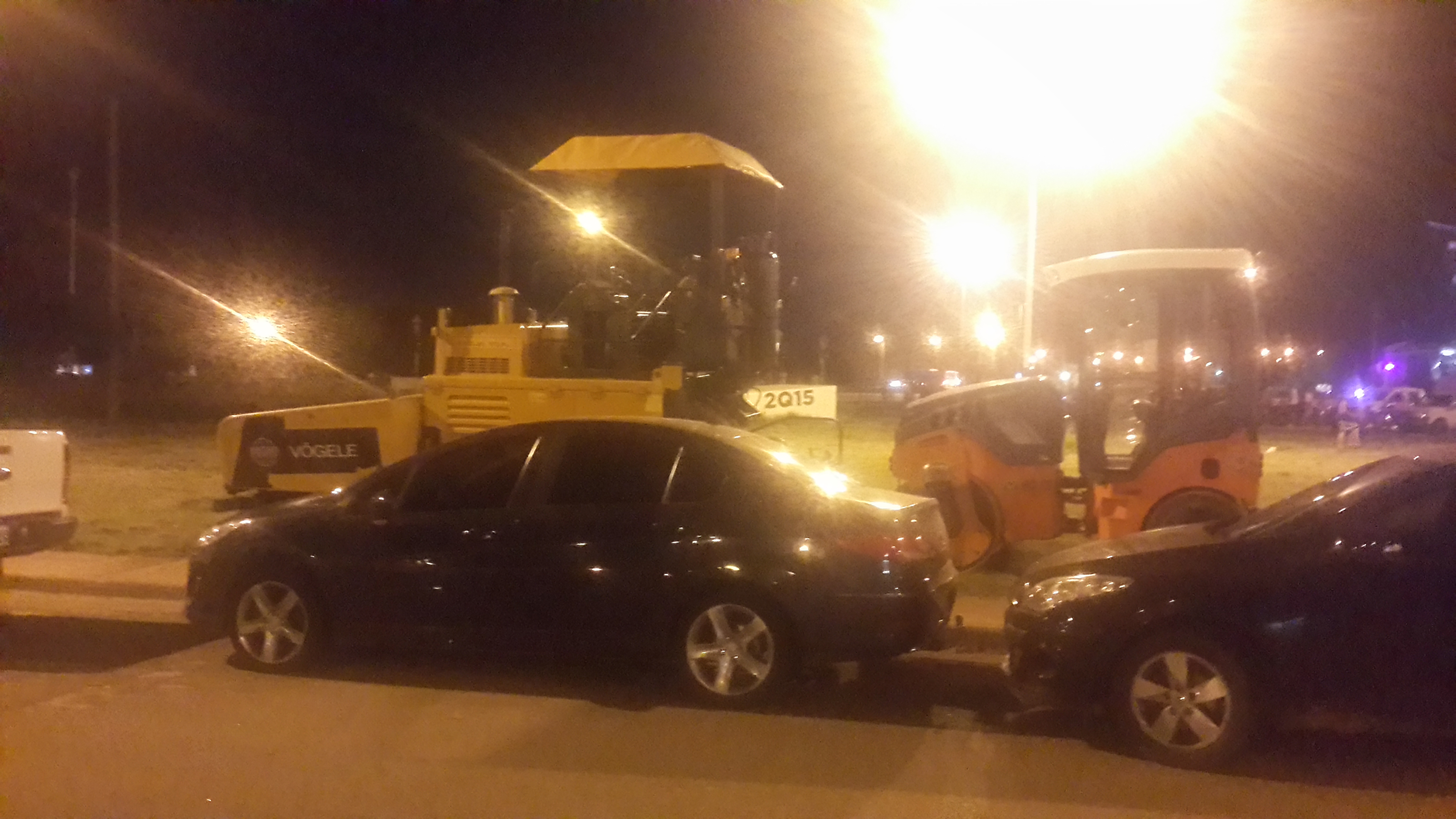 Las maquinarias de la empresa estatal La Rioja Vial SAPEM «duermen» sobre la Plazoleta de la Memoria, reinaugurada en la noche del martes por el municipio, frente a la comisaría Séptima. Quedan bajo la custodia policial y a la intemperie, pese a las malas condiciones climáticas.