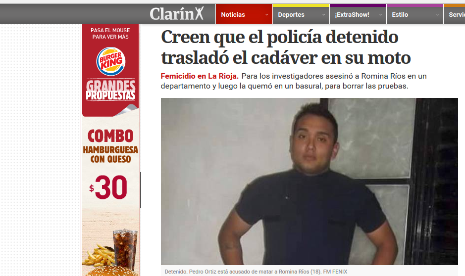 Le dio un tiro por la espalda en el departamento de un compañero. Luego cargó el cuerpo en su moto y lo llevó hasta un basural, a unas 20 cuadras de distancia. Allí lo quemó, arriba de neumáticos, con el objetivo de borrar las pruebas. Esa fue la secuencia que -según los investigadores- siguió Pedro Miguel Ortiz (18), el policía detenido acusado de matar a Romina Ríos (18), asesinada el jueves en La Rioja.
