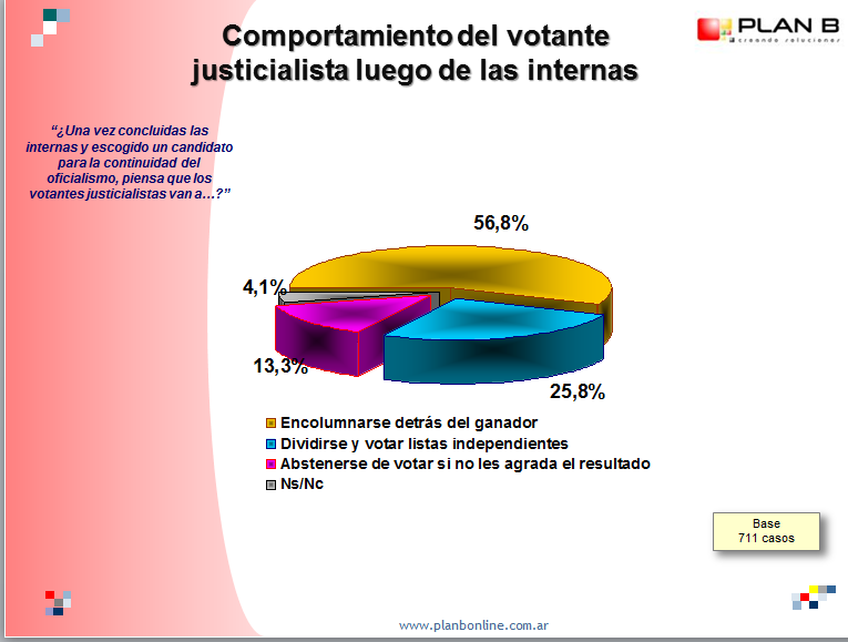 Según la consultora Plan B, el 60% de los encuestados votará en las elecciones del próximo 8 de marzo, en donde el sector del gobernador Luis Beder Herrera define quién será su candidato a sucederlo. Mientras que el 56% consideró que se deben encolumnar detrás del ganador de los comicios bederistas.