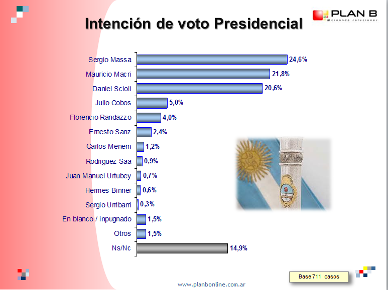 Según una encuesta de la consultora Plan B, el diputado nacional Sergio Massa ganaría en La Rioja como candidato a presidente en los próximas elecciones nacionales. Massa es seguido por el jefe de Gobierno porteño Mauricio Macri y el gobernador bonaerense Daniel Scioli.