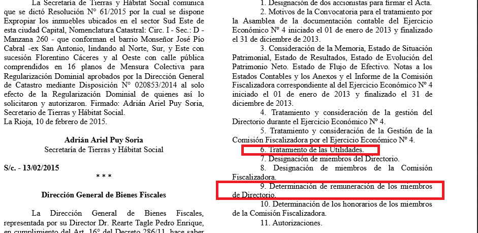 - Motivos de la Convocatoria para el tratamiento por la Asamblea de la documentación contable del Ejercicio Económico Nº 4 iniciado el 01 de enero de 2013 y finalizado el 31 de diciembre de 2013.