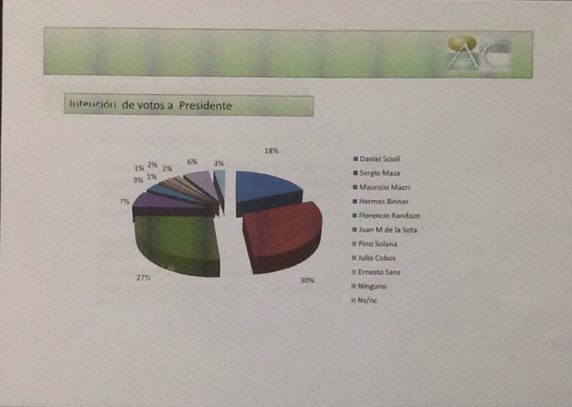 Otra encuesta asegura que el diputado nacional Sergio Massa es el candidato presidencial de los riojanos, según un sondeo de opinión de la empresa local AC Consultora. Massa tiene un 30 por ciento de intención de voto seguido por Mauricio Macri con 27 por ciento y Daniel Scioli con el 18 por ciento.