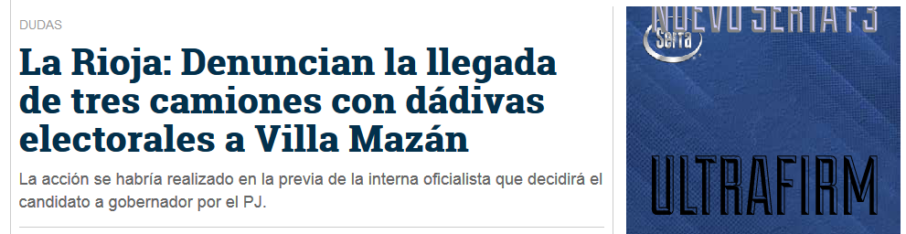 A través de fotos publicadas en la red social Twitter, vecinos de Villa Mazán, situada en el departamento Arauco y a 135 kilómetros de la ciudad de La Rioja, publicaron fotos de tres camiones repletos de colchones, camas, sillas y electrodomésticos. La llegada de estos camiones se enmarca en el trabajo preelectoral con vistas a la interna abierta convocada por Beder Herrera para el próximo 8 de marzo.