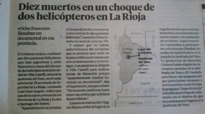 El diario, para graficar la nota del terrible accidente que aconteció en La Rioja, colocó un mapa ilustrativo, el problema es que esa imagen no correspondía al lugar donde ocurrió el accidente.
