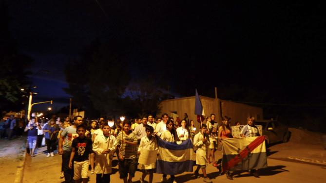 El pueblo de Villa Castelli, en la norteña provincia argentina de La Rioja, marchó con velas y lazos negros para recordar a las diez víctimas, dos argentinos y ocho franceses, del choque de dos helicópteros registrado el pasado lunes.
