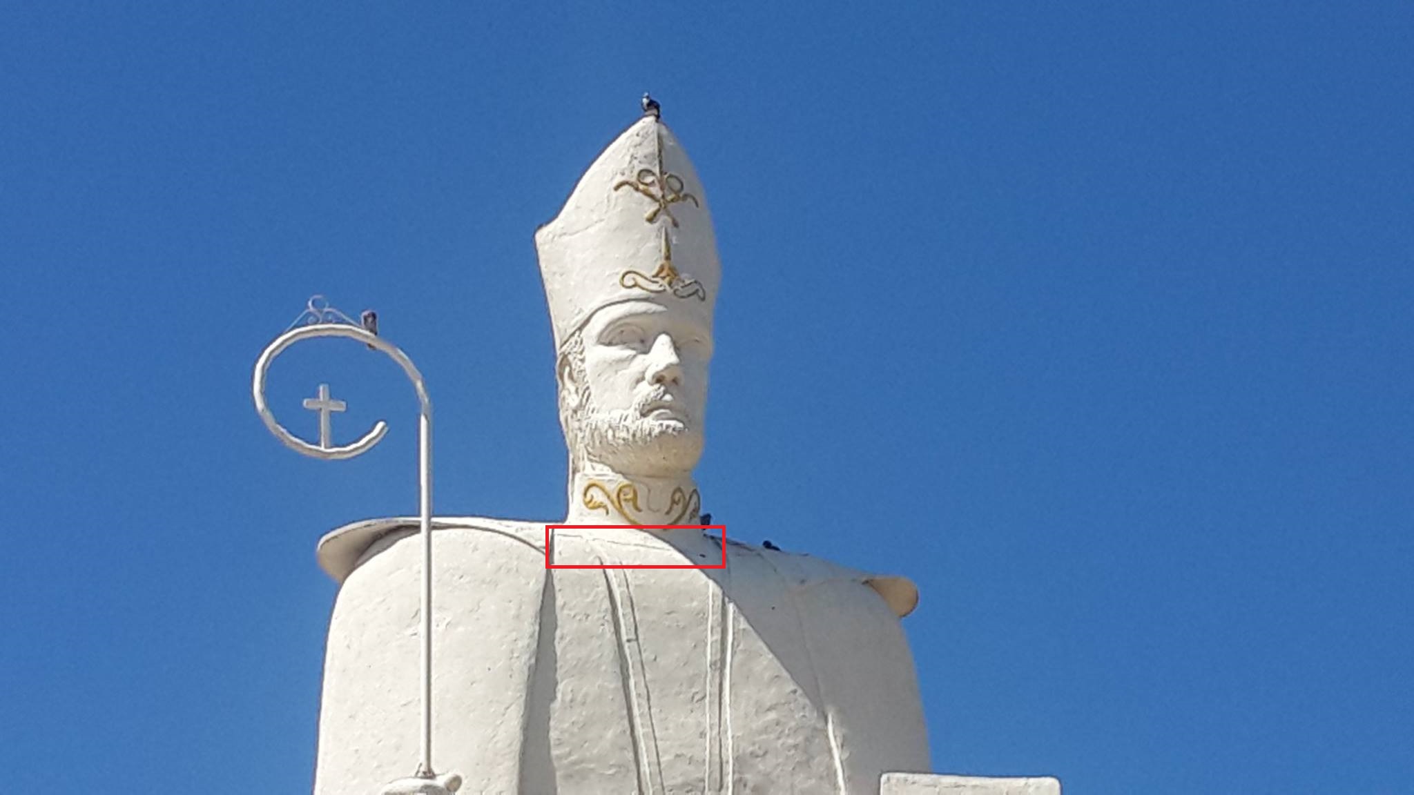 La imagen de San Nicolás, ubicada en el ingreso sur a la ciudad, presenta importantes rajaduras, especialmente en la parte posterior. Tras la caída del Cristo de la Hermandad, la figura también sufrió las consecuencias de las sucesivas lluvias que se dieron en la provincia.