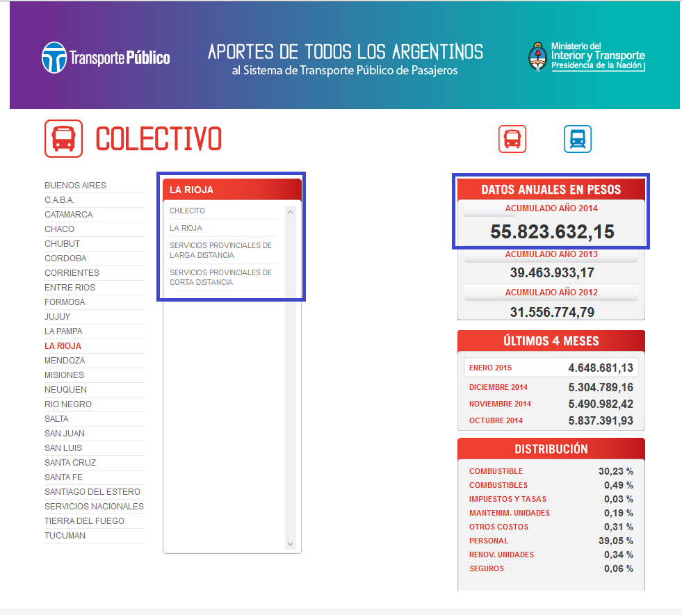 La Rioja recibió $55.823.632,15 por concepto de subsidios para el transporte público de pasajeros durante el 2014. Así lo plasmó el último informe publicado por el Ministerio del Interior y Transporte de la Nación.