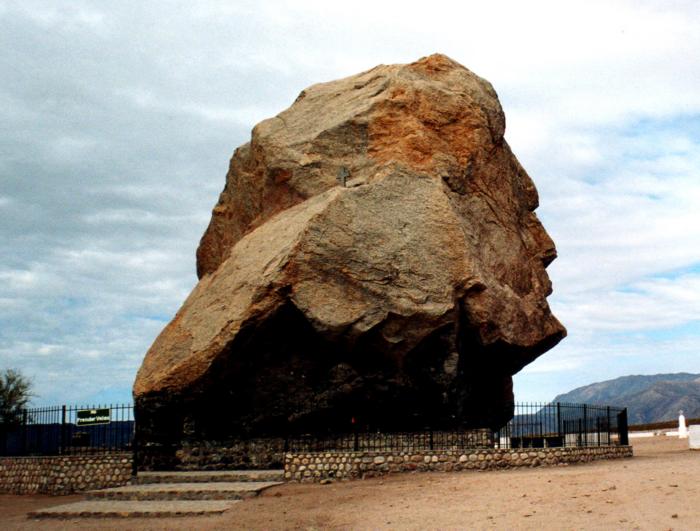 Es una piedra enorme, donde claramente se puede ver el perfil de un rostro. Los creyentes dicen que es el rostro de Cristo instalado en La Rioja.