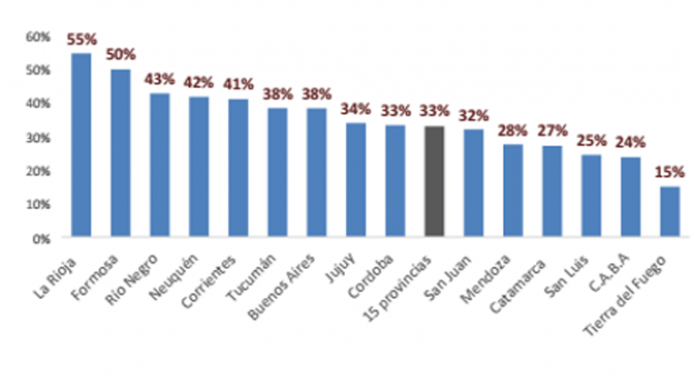 Entre las provincias cuyos recursos propios crecieron por encima del promedio, se destaca La Rioja con una variación interanual de 54,8%, aunque con la menor participación en el total (0,3%), jurisdicción que realizó modificaciones en las alícuotas de ingresos brutos y sellos. En el otro extremo se ubica Tierra del Fuego, cuya recaudación creció tan solo 15% con respecto a igual período del año anterior.