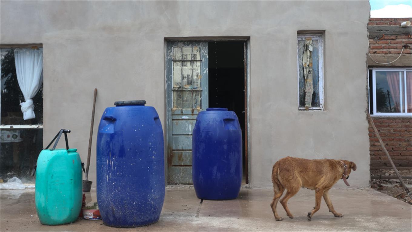 Tambores de plástico azul, bidones, pozos comunitarios, aljibes individuales. Todo, a menos de 50 kilómetros de dos diques. Uno, El Saladillo, es un espejismo de miles de litros de agua salada que ni los animales toman. La planta desalinizadora lleva décadas de promesas.
