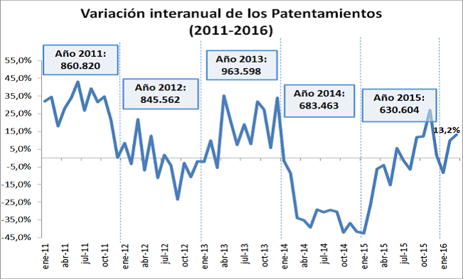 En el acumulado al primer trimestre, los patentamientos presentan una suba del 3,5% con respecto a igual periodo de 2015 pero se encuentran por debajo de los registrados en años anteriores.