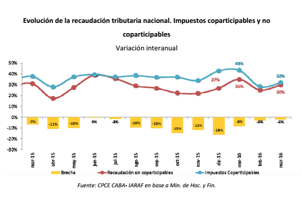 En marzo la masa bruta coparticipable aceleró levemente su ritmo de expansión en relación a febrero, con una tasa del 32%.