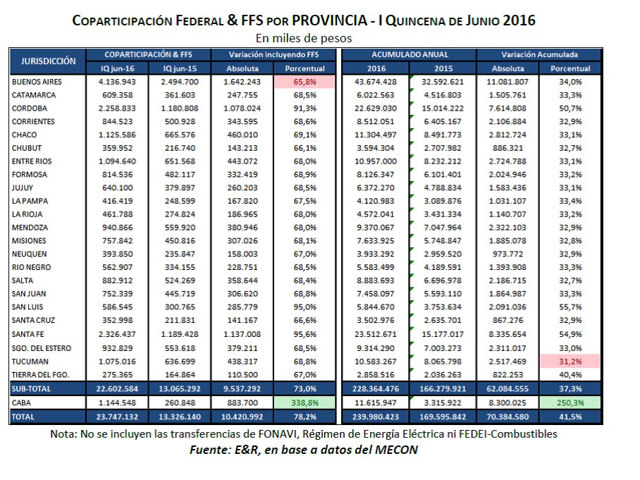 Según la consultora Economía & Regiones, la Provincia aparece con un aumento del 68% de los ingresos por coparticipación federal en la primera quincena de junio.
