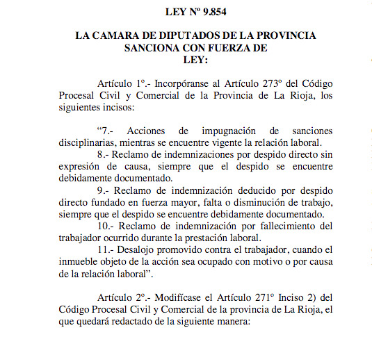 Artículo 1º.- Incorpóranse al Artículo 273º del Código Procesal Civil y Comercial de la Provincia de La Rioja, los siguientes incisos: