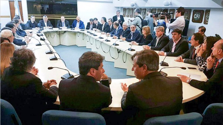 Durante el mediodía de hoy, legisladores nacionales del bloque Justicialistas, el kirchnerismo y varios gobernadores mantuvieron un encuentro de una hora en el Consejo Federal de Inversiones, en la que se definieron los puntos que llevarán a la negociación en el Congreso.