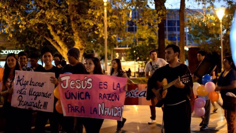 Los jóvenes riojanos realizaron el viernes 23 de diciembre una actividad en la plaza céntrica de la ciudad capital, que tuvo como objetivo recordar a la comunidad cuál es el verdadero sentido de la Navidad.