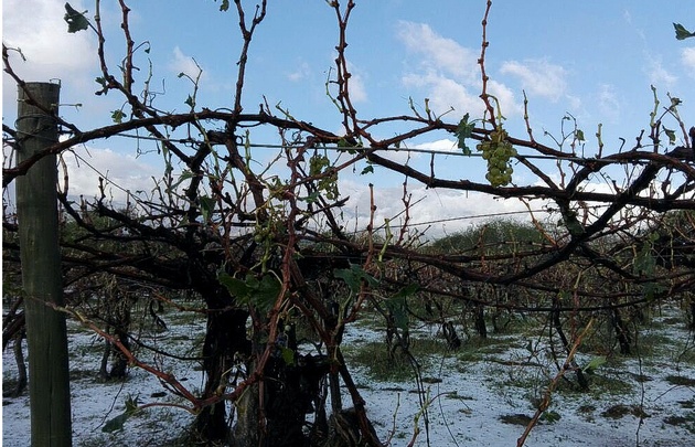 Una fuerte pedrea causó numerosos destrozos anoche en el sector productivo del departamento Famatina, en el oeste de la provincia de La Rioja.