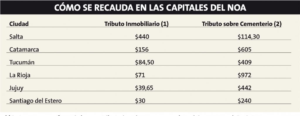 Ocurre lo mismo en el tributo que incide sobre los cementerios, donde en Catamarca se pagan entre $63 y $490 más que en otras capitales por el alquiler de un nicho anual, pero unos $300 menos que en La Rioja, que tiene el más alto.