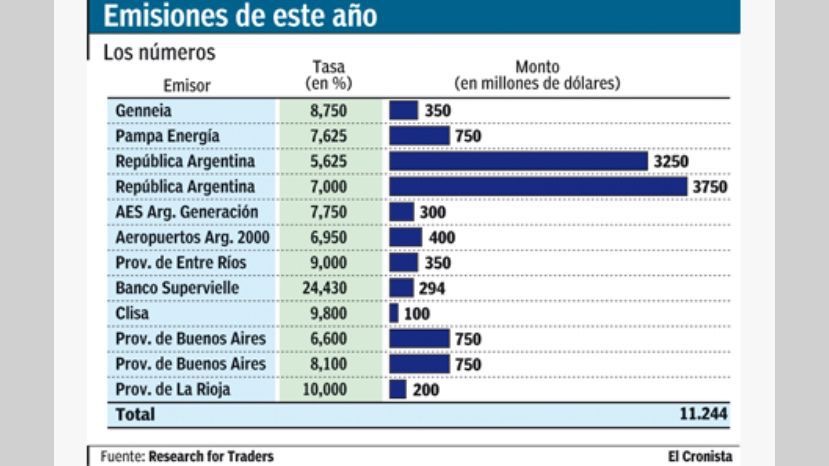 La semana pasada, fue el turno de la provincia de Buenos Aires, que colocó u$s 1.500 millones en dos tramos, en un bono a cinco y otro a diez años.