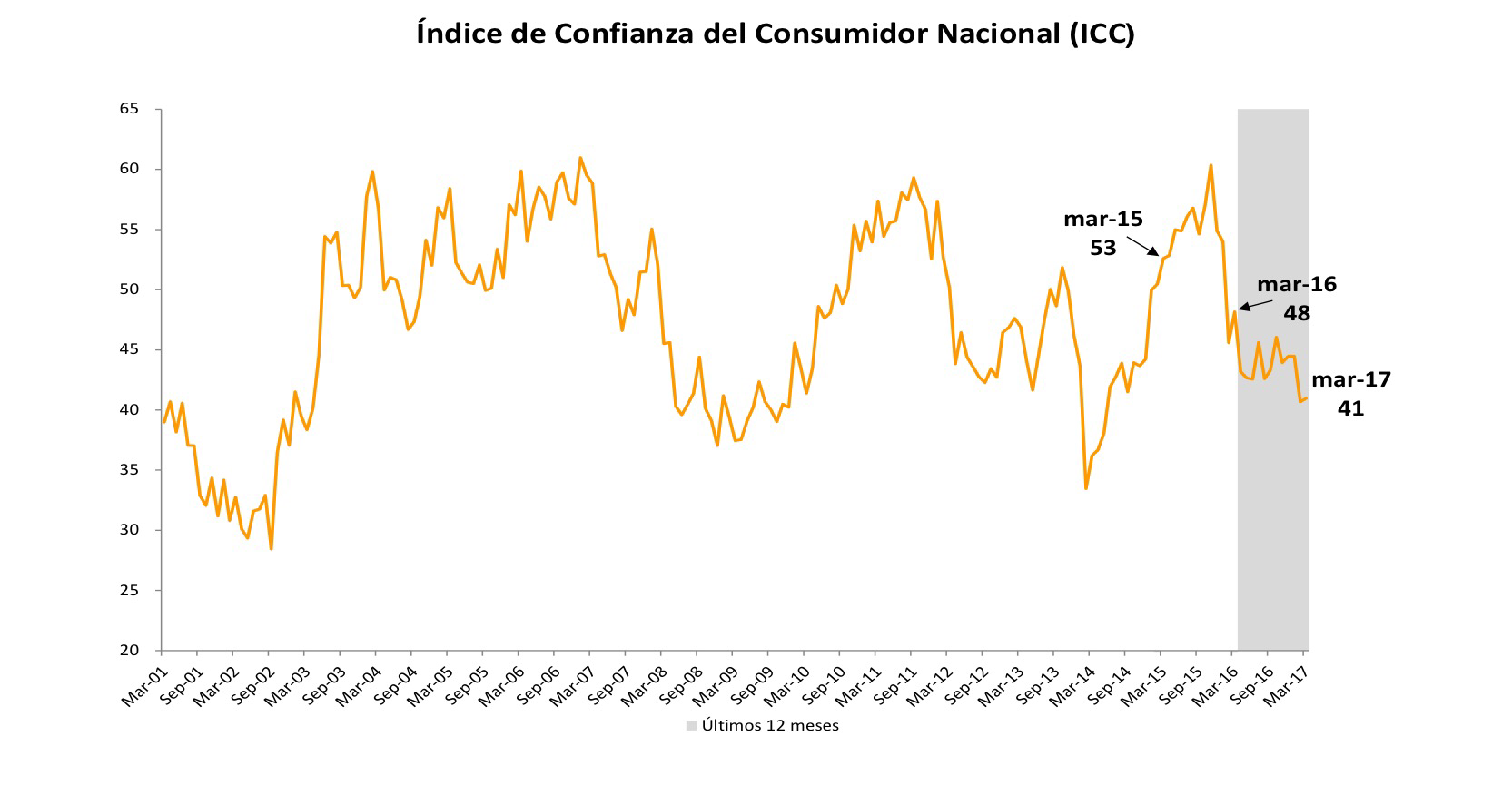En el mes de marzo, el ICC subió 0,7% con respecto a febrero. En términos interanuales, el indicador mostró una caída de 15% respecto a marzo de 2016.