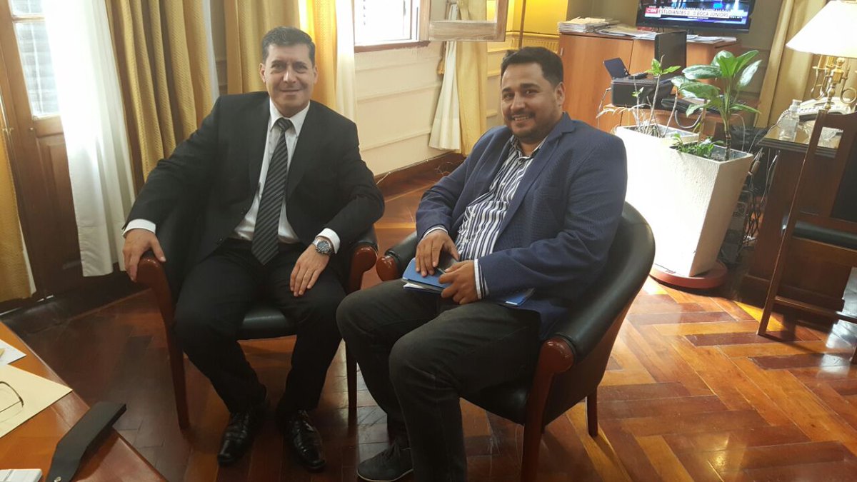 Tras el encuentro con el mandatario provincial, el jefe comunal manifestó que «invité al gobernador para que los acompañe el miércoles, en este aniversario y también para hablar sobre las diferentes problemáticas que tiene el departamento, particularmente el tema del empleo que se vio afectado por el cierre de la empresa Unisol».