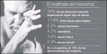 El nuevo estudio global, difundido por la OMS, revela que casi el 16 por ciento de las personas de más de 60 años sufrió algún tipo de abusos o maltrato: abusos psicológicos (un 11,6 %), financiero (6,8 %), de abandono (4,2 %), abusos físicos (2,6 %) o abuso sexual (0,9 %).