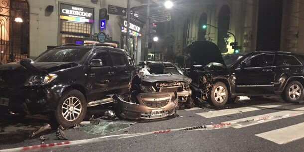 Los ocupantes intentaron resistirse a la policía a los tiros, mientras manejaban de Almagro a Balvanera. En la esquina del shopping Abasto, los delincuentes chocaron con una camioneta Jeep y con una Toyota Hilux, manejada por un oficial de la Comisaría 33° que estaba haciendo servicio de custodio de un camión de caudales.
