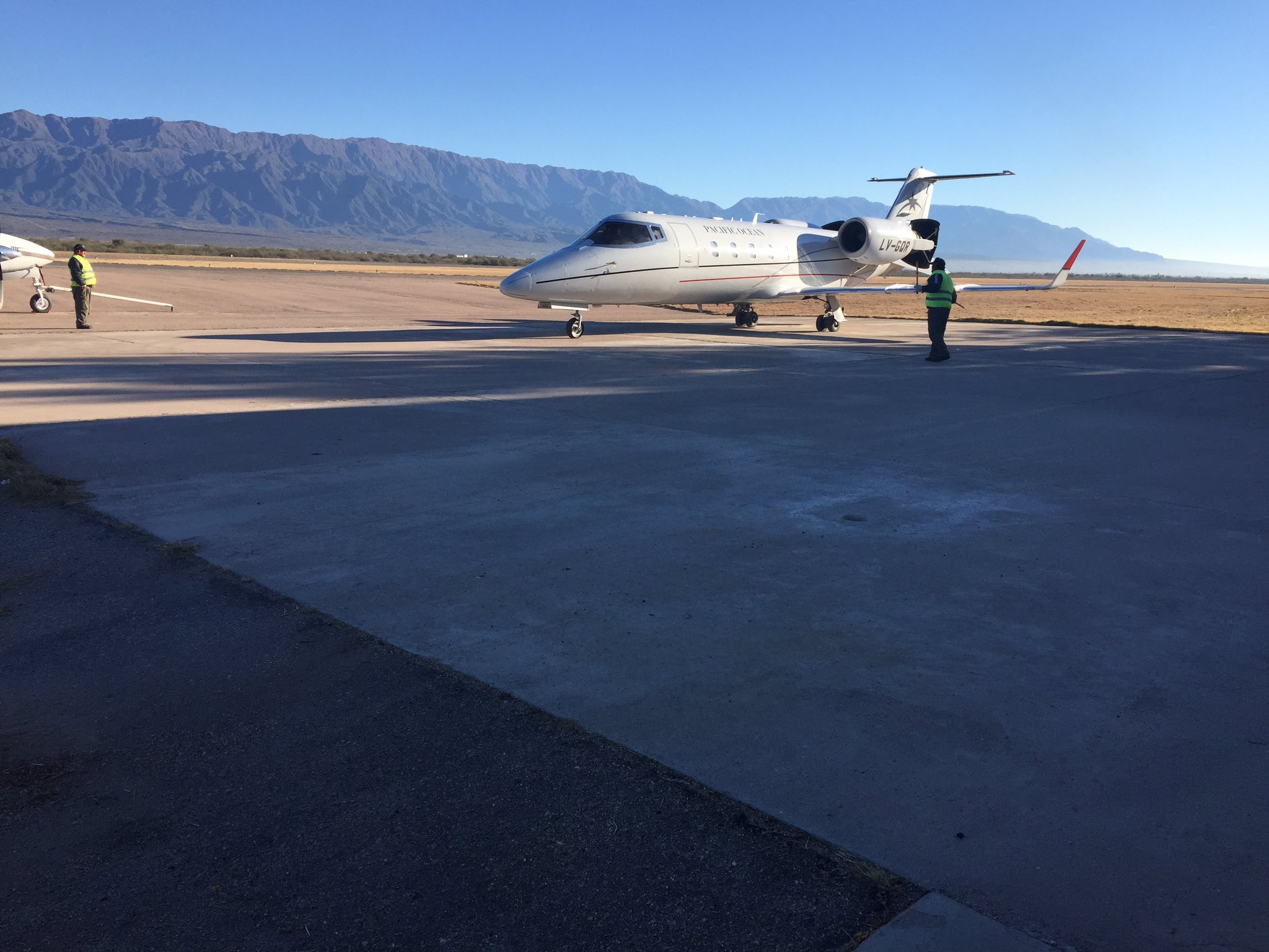 El ministro del Interior, Rogelio Frigerio, llegó el jueves pasado a La Rioja en un avión de la empresa Pacific Ocean.