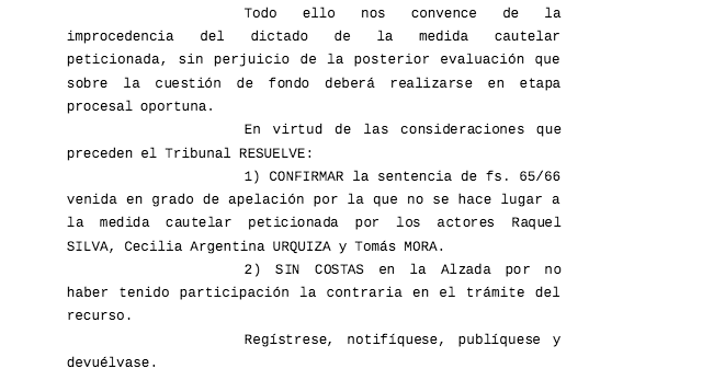 «El hecho de que aun percibiendo los ingresos mencionados, los actores se ubiquen por debajo de la línea de pobreza -tal y como se afirma en el libelo de inicio- constituye, una cuestión que merece ser probada y merituada fuera de este marco estrictamente precautorio, pudiendo recurrir a todo evento, a la señalada instancia de revisión administrativa, que no ha sido intentada, pero que resulta más idónea y cuyo ejercicio podría procurar una inmediata satisfacción del derecho que dicen, ha sido conculcado», resaltaron los magistrados.