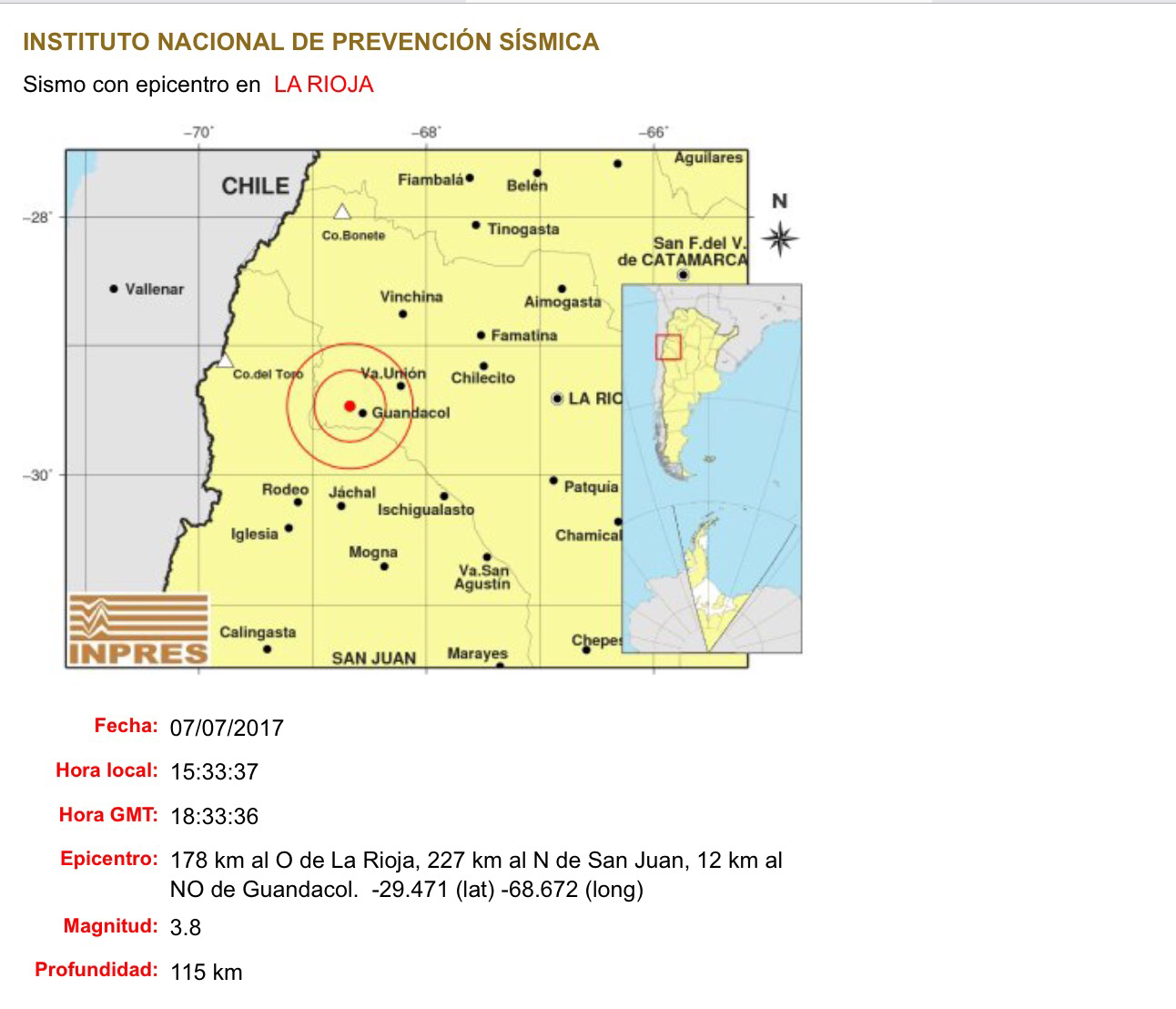 De acuerdo a datos del Instituto de Prevención Sísmica (INPRES), en los primeros 6 meses del 2017, en Argentina ocurrieron 2093 sismos registrados, de los cuales, el 11,9% ocurrieron en Jujuy.