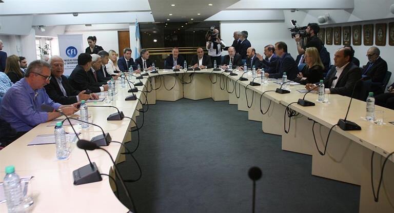 Los gobernadores peronistas distanciados del kirchnerismo se reunieron en el Consejo Federal de Inversión (CFI) para consensuar una postura en común respecto de la coparticipación federal de recursos, el impuesto al cheque, los Aportes del Tesoro Nacional (ATN), el Fondo del Conurbano y el reparto de la obra pública, entre otros temas, previo a la reunión convocada para la próxima semana por el presidente Mauricio Macri.