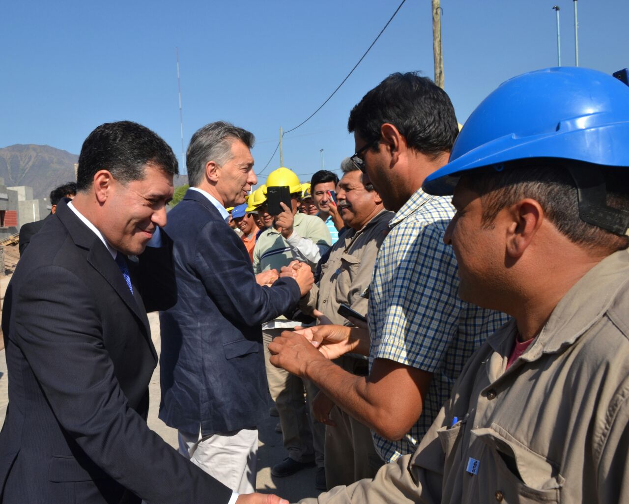 En la oportunidad, Macri y el gobernador Casas realizaron un recorrido por la obra de viviendas y se fotografiaron con trabajadores y familias beneficiarias.