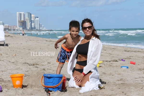 Zulemita aprovechó el sol para pisar la arena junto a su hijo menor, Malek Procovi (cinco años). Llegaron después del mediodía a una playa de Bal Harbour. La empresaria se manejó con cierto reparo por la temperatura moderada: esa camisola blanca era necesaria…
